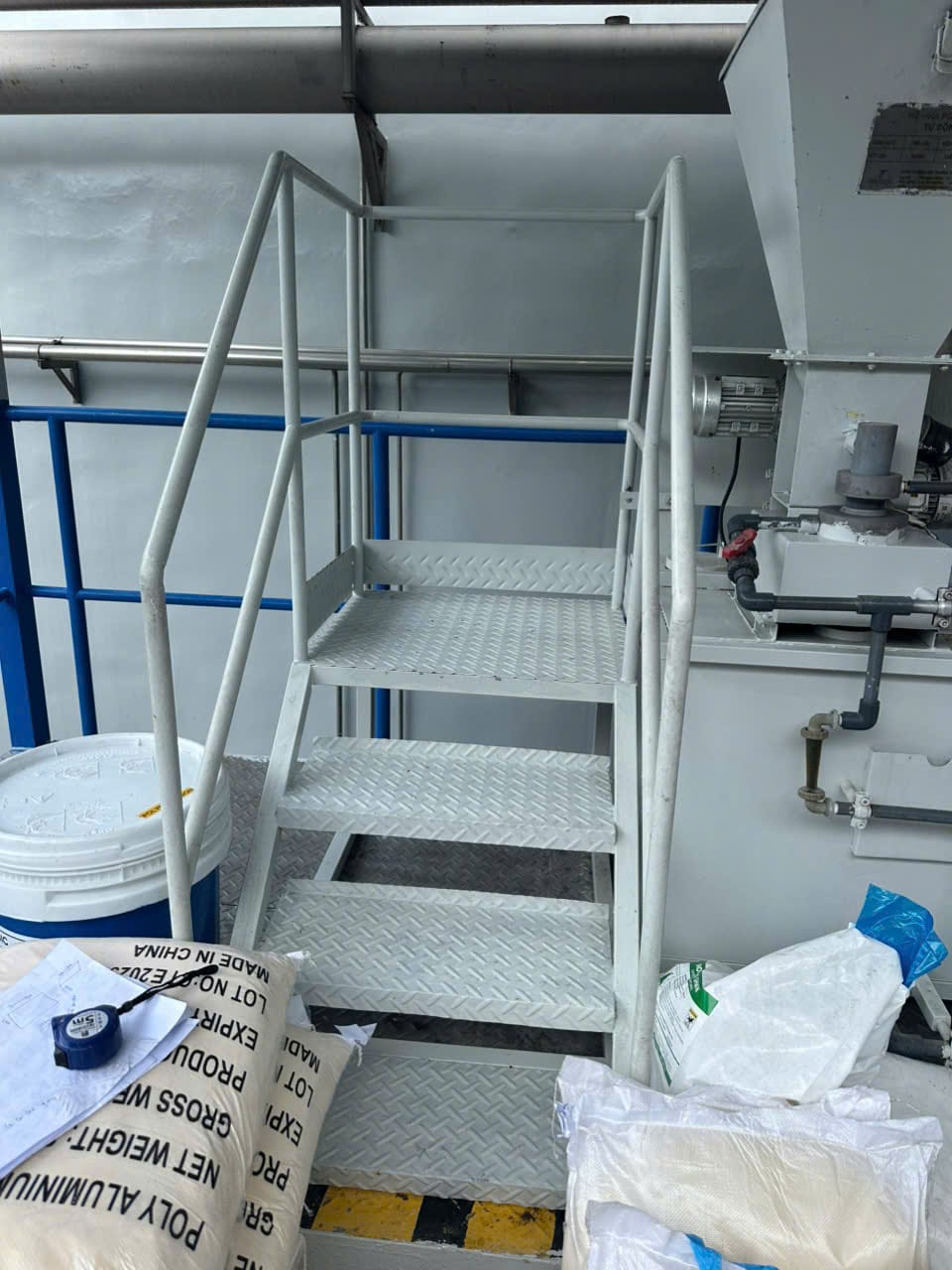 Công trình được thi công và lắp đặt tại khu nhà máy sản xuất, với hạng mục chính gồm hệ thống sàn thao tác, cầu thang thép và khung kết cấu chịu lực.